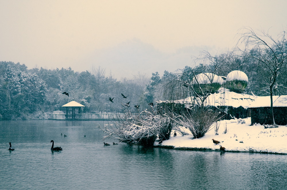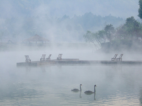湖水清澈,景色宜人... 給許多的黑天鵝安了個(gè)寧?kù)o的家園!