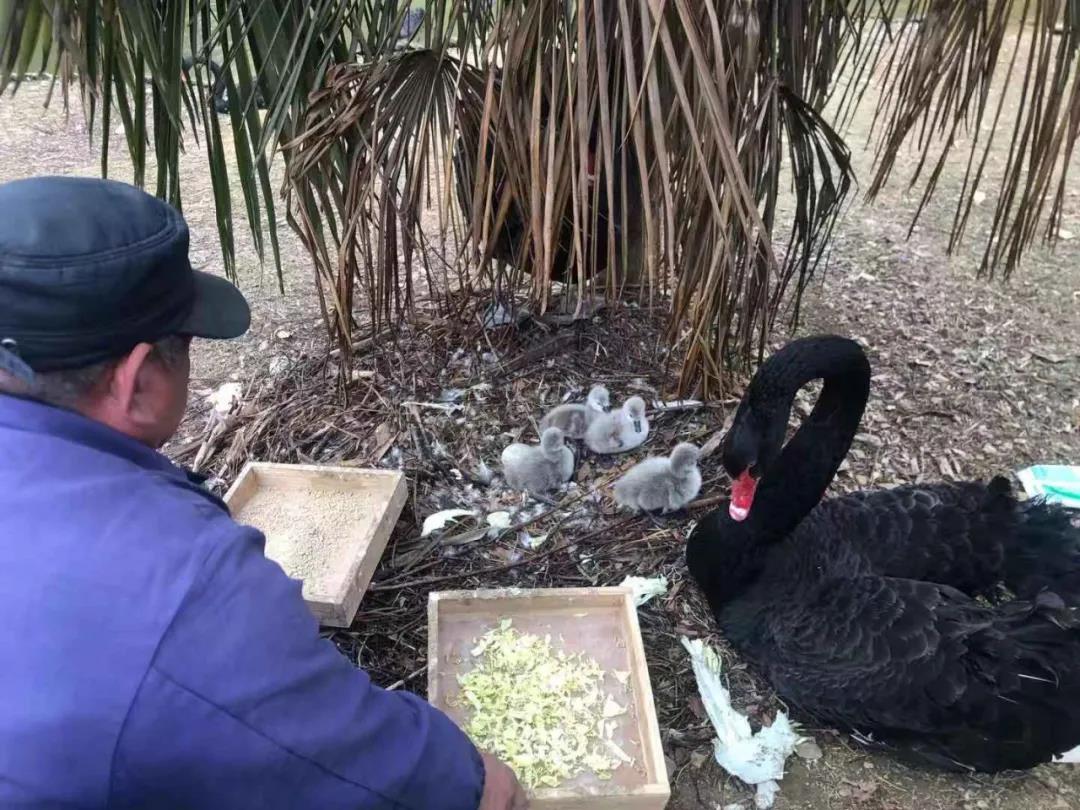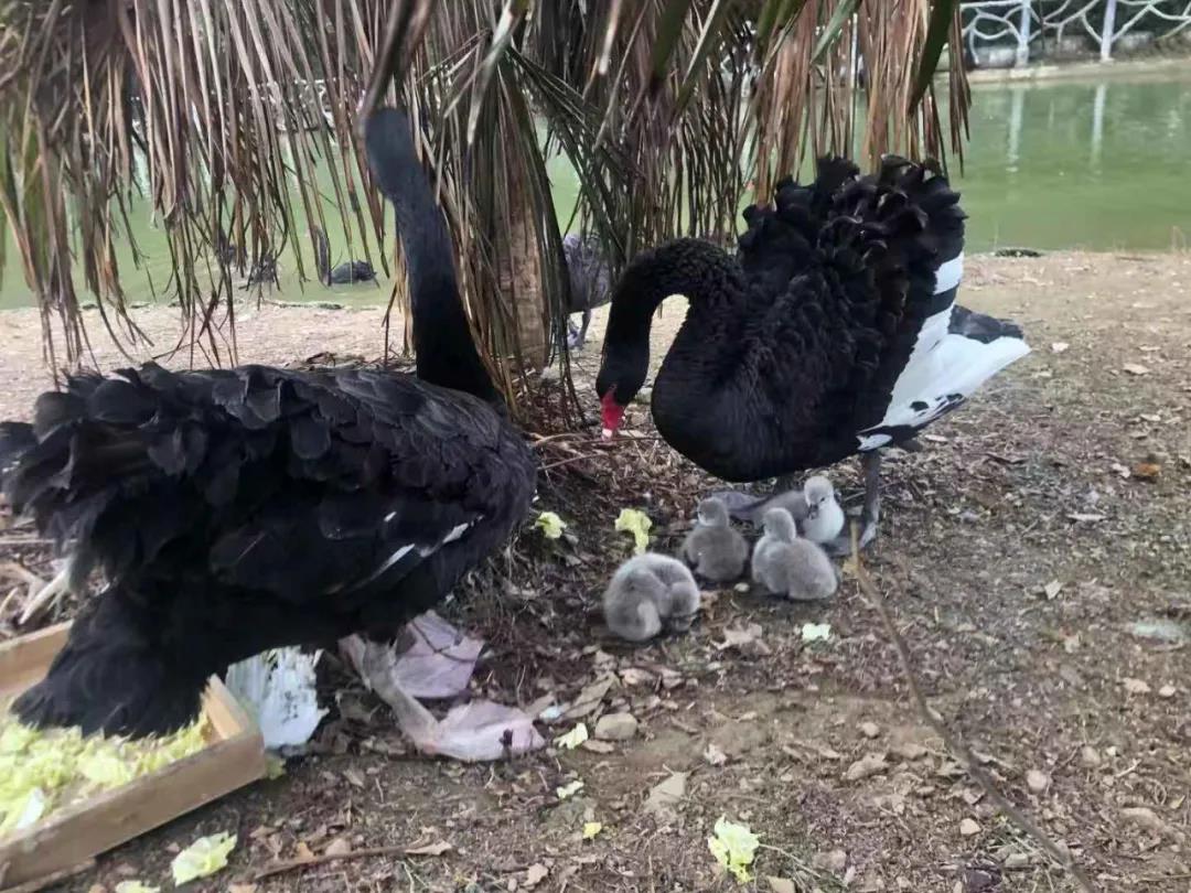 今日,景區(qū)動物園黑天鵝繁殖基地傳來好消息,新年的首批天鵝寶寶順利“破殼”出生,在飼養(yǎng)員的精心照料下,4只天鵝寶寶健康狀況良好。